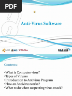 What is anti-virus and its types? Antivirus software is a program designed and developed to protect computers from malware like viruses, computer worms, spyware, botnets, rootkits, keyloggers and such. It consist of three basic steps that are scan, detect and remove viruses from your computer.