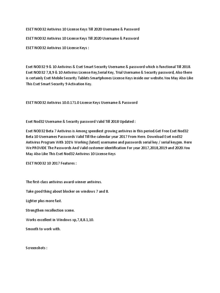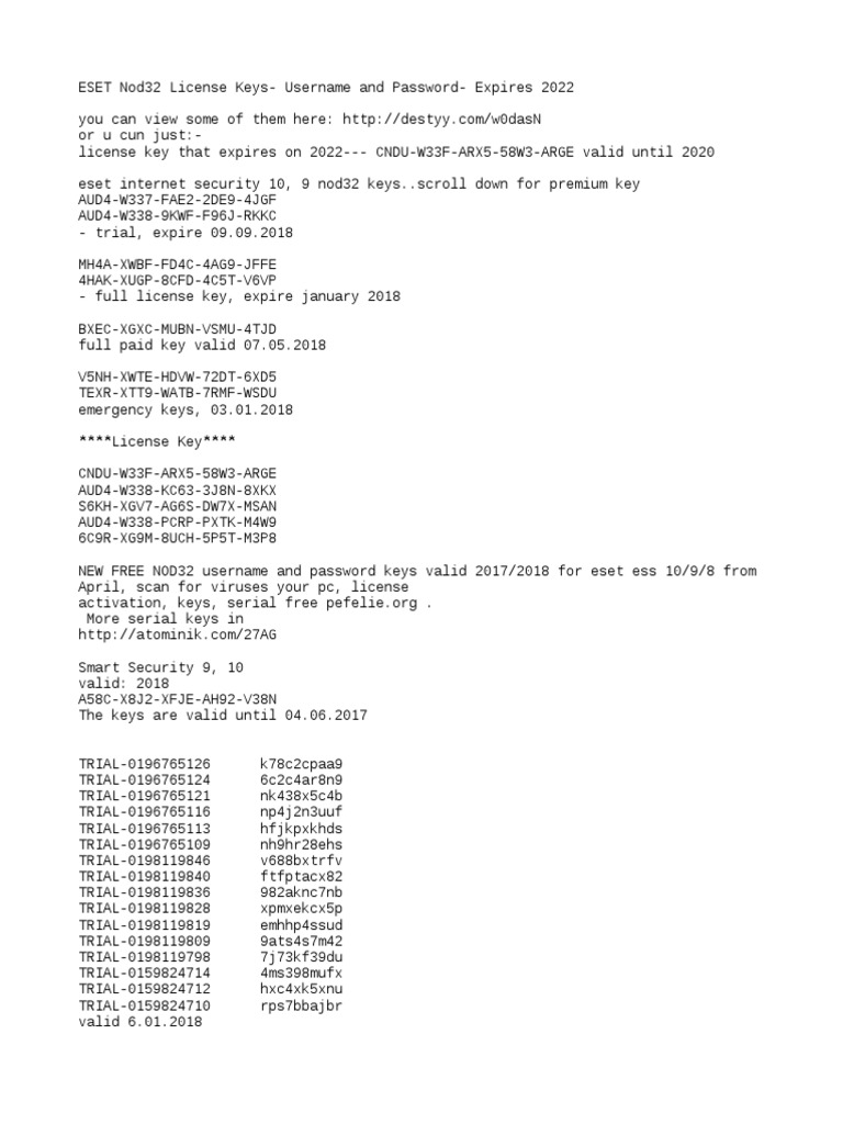 ESET NOD32 ANTIVIRUS KEYS VALID 2020.txt - PDFCOFFEE.COM