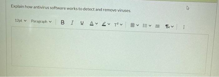 Solved Explain in brief how an anti-virus software works ... Expert Answer 100% (1 rating) Antivirus Software Antivirus software or Anti malware software is used to detect, prevent and take action to eliminate malicious software or malwares like virus, worms. trojanhorses etc. from your system. In addition, it prevents or removes unnecessa … View the full answer Previous question Next question