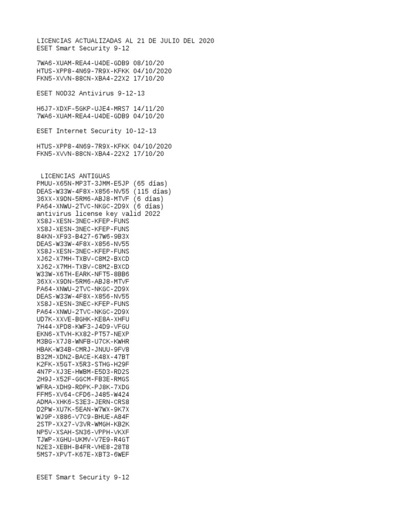 ESET NOD32 licencias gratis 2022-2023 - Home ESET NOD32 licencias gratis 2022-2023. 75 likes · 7 talking about this. Licencias Eset Nod32 Gratis Actualizadas 2022-2023. Nuevas Licencias Eset NOD32 - Eset Internet Security - Eset Mobile Security.