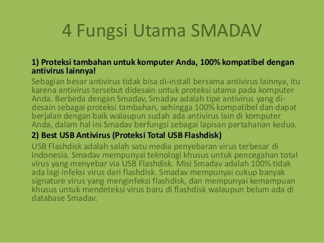 Smadav usb antivirus 2017 free download. Smadav Antivirus 2022 - Official Website + New interface : Smadav Free will show messages in every startup. Smadav 2017 Rev. 11.1 - 11.7 : + Main detection technology now using heuristic & whitelisting (file reputation), + Sending usage of statistics to help improvement of Smadav, + Improvement in detection and cleaning virus that spread via USB Flashdisk, USB-AV Antivirus 2017 - Free download and software reviews ... Jan 18, 2017 · Download USB-AV Antivirus 2017 for Windows to scan and protect USB drives from viruses. ... Protect your PC against breaking cyber threats with a free antivirus, parental Web control, and VPN ... id Smadav: SmadAV 2017 Free Download SmadAV 2017 Free Download SmadAV has its own means (behavior, heuristic, and whitelisting) in detecting as well as cleansing infections that will certainly additionally boost the safety on your computer system. Due to the fact that the resource use is very tiny SmadAV, SmadAV will certainly not raise your computer's efficiency under hefty usage.